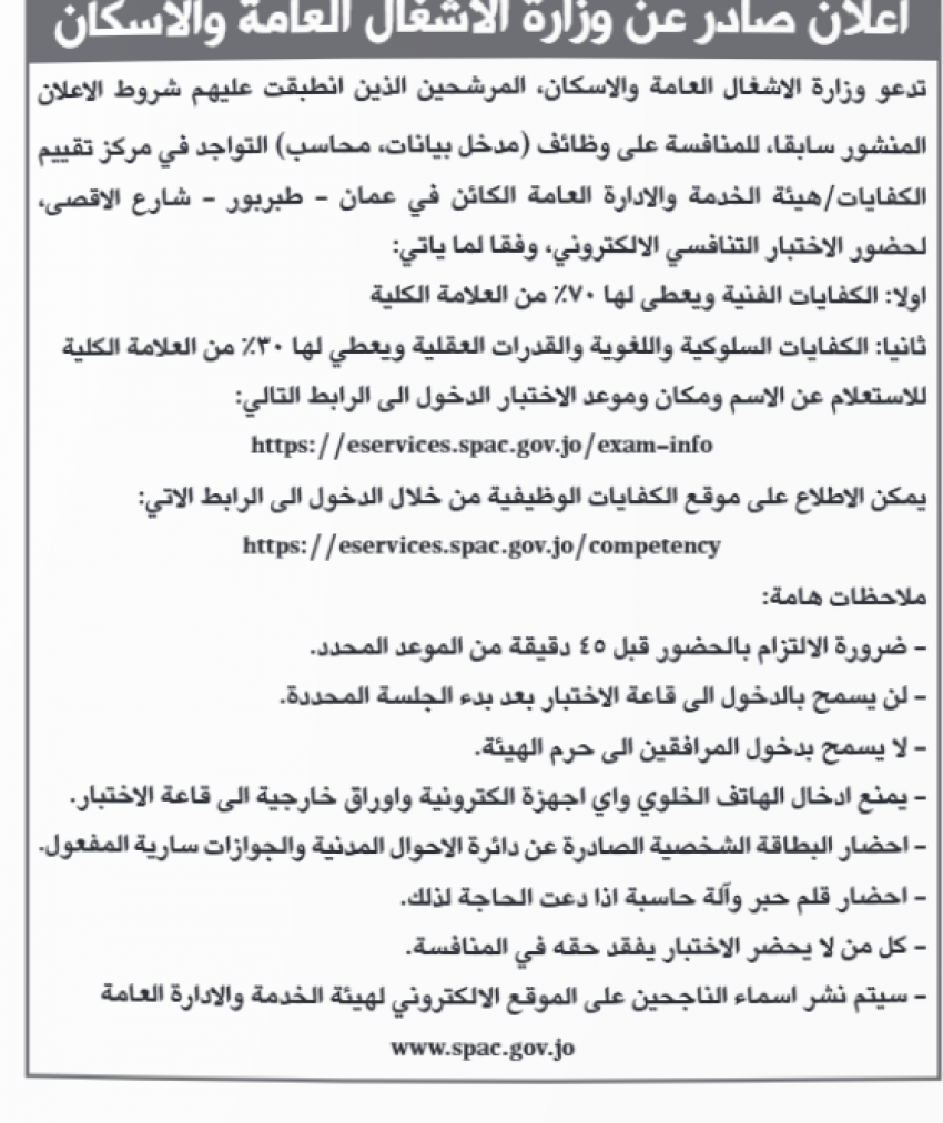وظائف شاغرة في القطاع العام .. ودوائر تدعو لامتحانات الكفايات