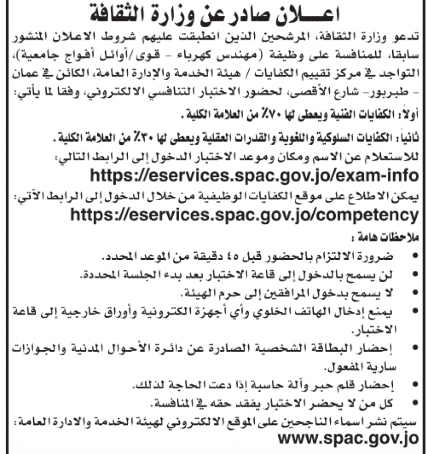 للعلّم - دعت مؤسسات حكومية متقدمين إلى وظائف عدة لضرورة الاطلاع على مواعيد امتحانات الكفايات، في حين دعت مؤسسات أخرى إلى متقدمين إلى المقابلات الشخصية.
