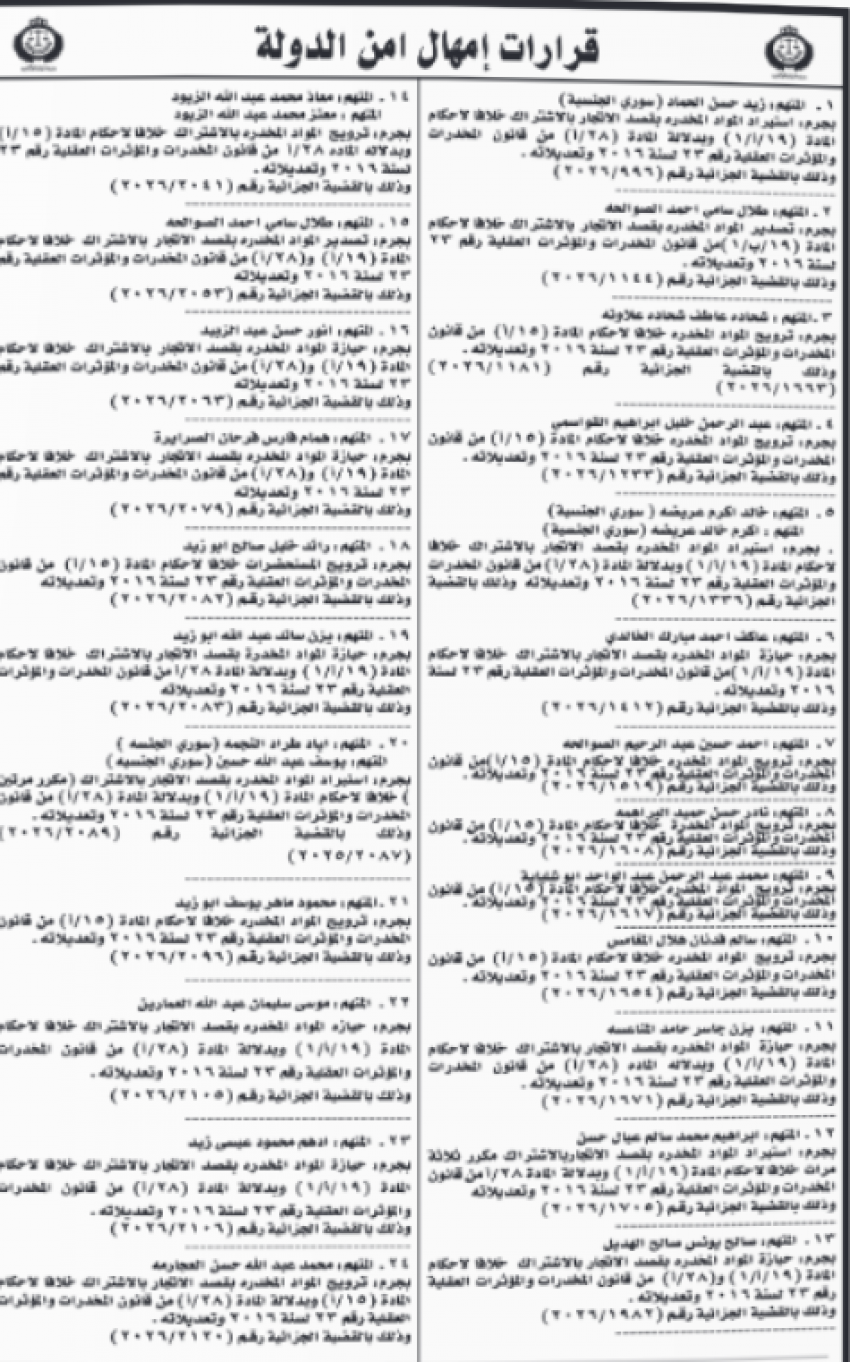 للعلّم - أعلنت محكمة أمن الدولة اليوم الأربعاء إمهال عدد من المتهمين مدة 10 أيام لتسليم أنفسهم.
