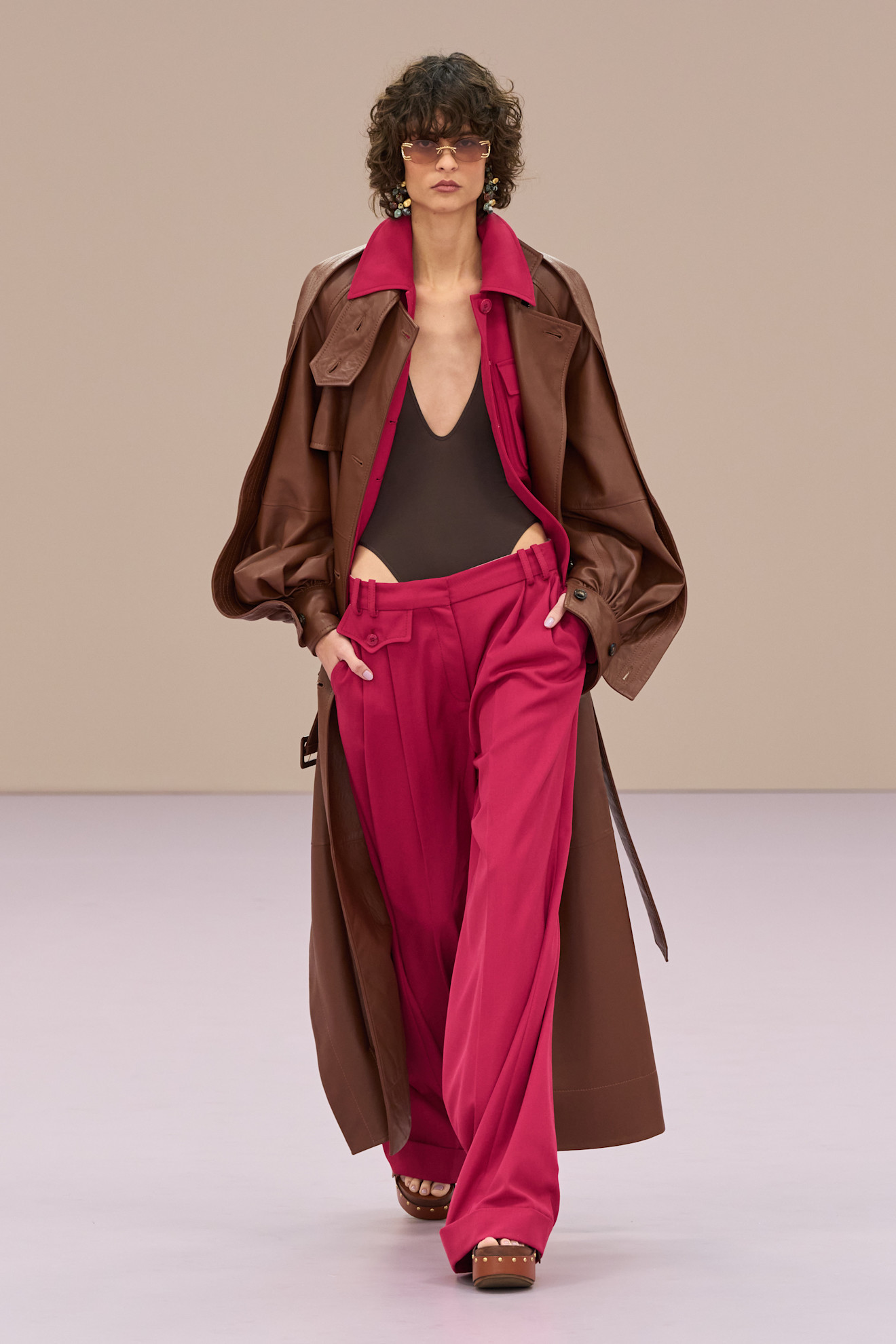 الموسم يحتفي بالألوان القوية، فلماذا لا نمنح الترابي شريكاً جريئاً؟ في عرض Zimmermann، اجتمع البني مع الفوشيا في تنسيق لافت يوازن بين الدفء والاندفاع.