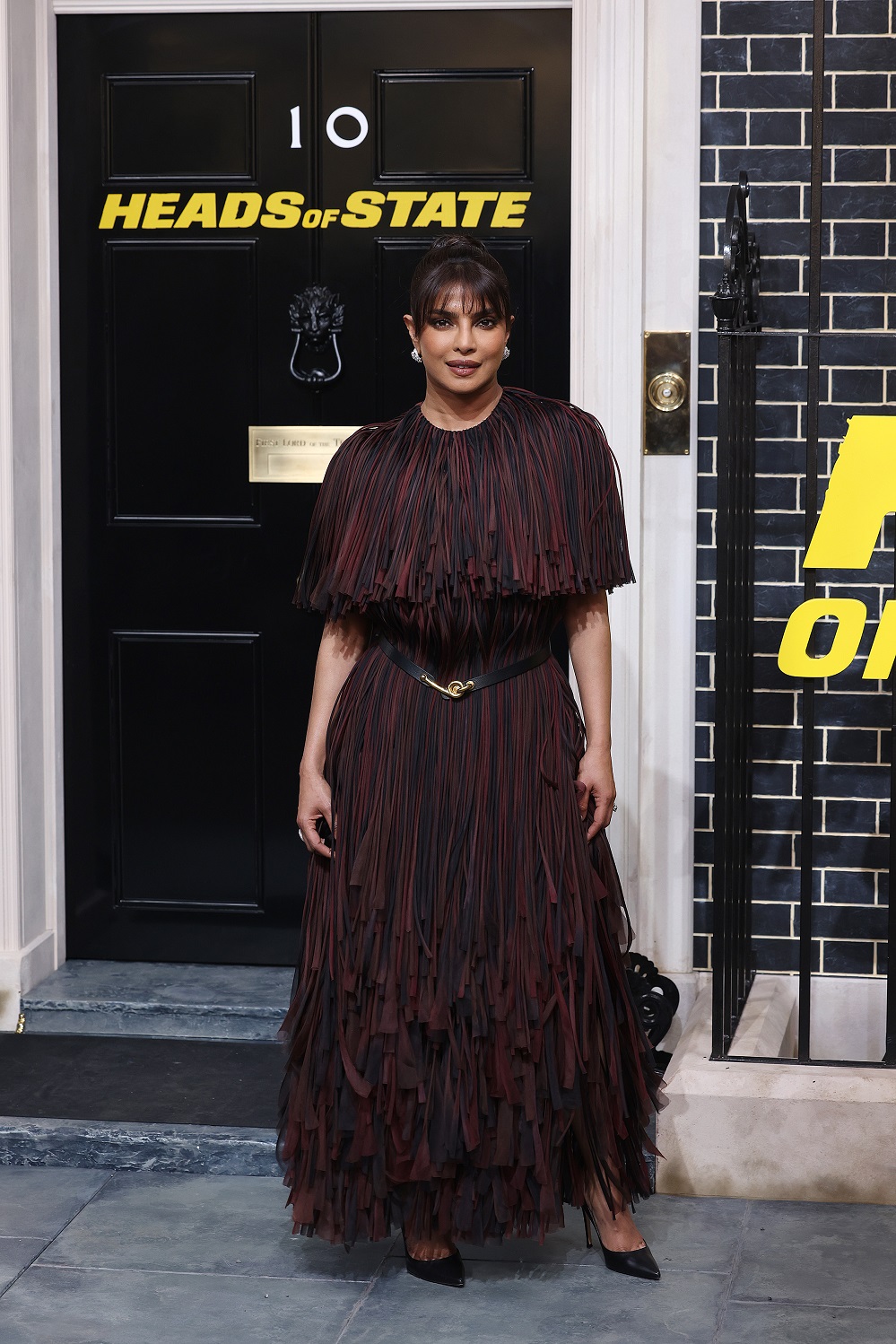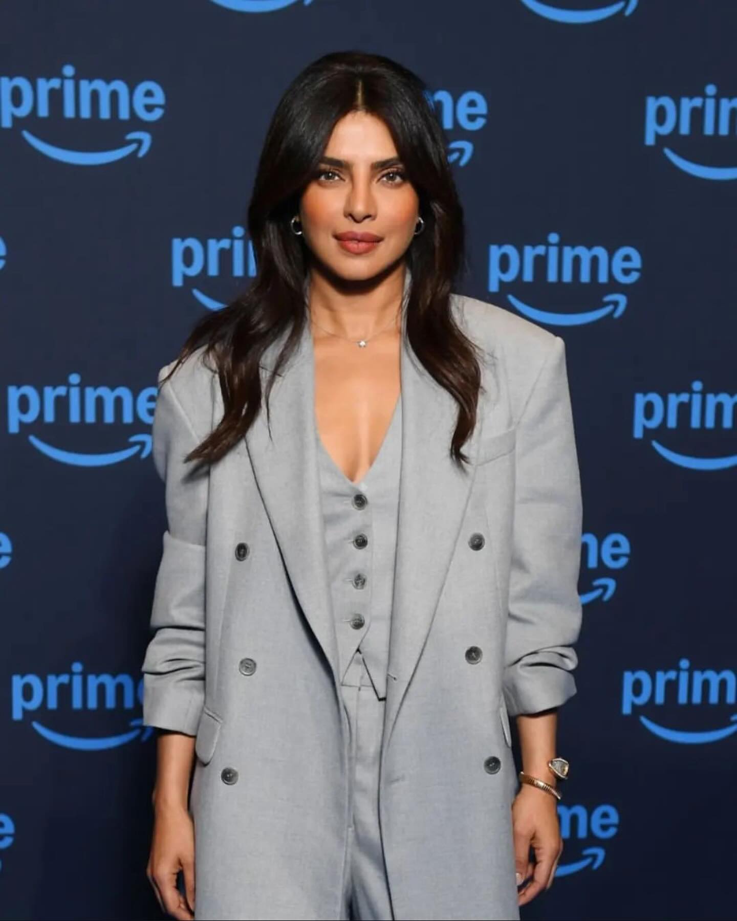 تتألق بريانكا في البدلات الكلاسيكية بأسلوب يعكس شخصية قيادية واضحة. من أبرز إطلالاتها بدلة برتقالية نسّقتها بروح خريفية أنيقة، بتصميم مريح يضم بنطالًا واسع الأرجل وجاكيت فضفاض بصف أزرار وياقة عريضة. أضافت توبًا بلون لحمي ومجوهرات ناعمة، فبدت الإطلالة متوازنة بين العملية والرقي.