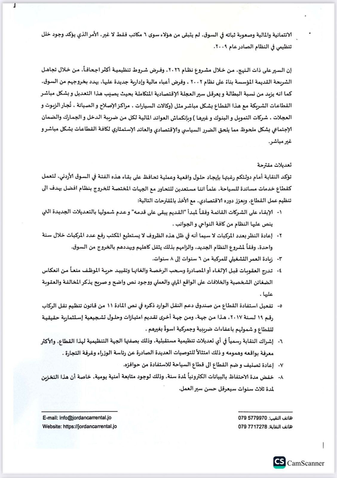 وقدمت النقابة تعديلات مقترحة، تأكيدا على رغبتها بإيجاد حلول واقعية وعملية تحافظ على بقاء هذه الفئة في السوق الأردني، لتعمل كقطاع خدمات مساندة للسياحة، مؤكدة استعدادها للتحاور مع الجهات المختصة للخروج بنظام افضل يهدف الى تنظيم عمل القطاع، ويعزز دوره الاقتصادي، مع الأخذ بالمقترحات التالية: