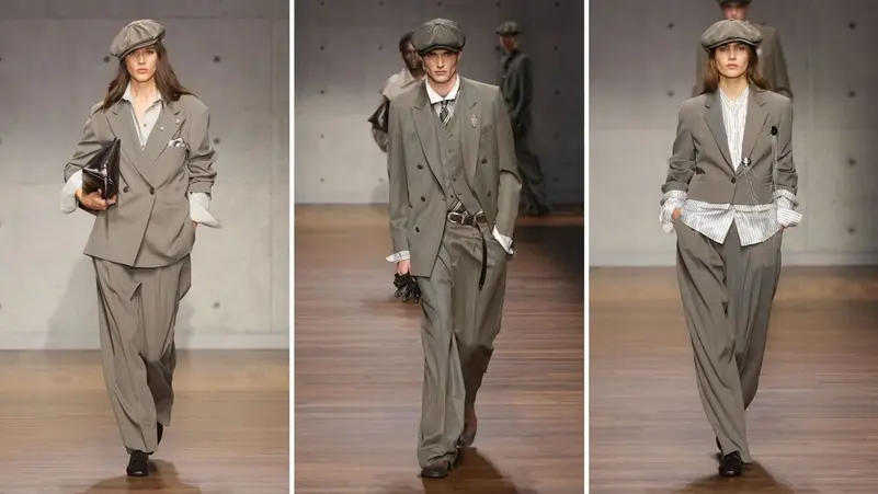 بدت الأزياء الرجالية مستوحاة من طراز الأناقة البريطانية، فقد تم تنفيذ العديد منها بخامة التويد وطبعة المربعات. أما الأزياء النسائية فغلبت عليها لمسة من نعومة السبعينيات. وأتت المعاطف الطويلة ذات التصميم البسيط والبدلات بلوني الرمادي الداكن والبيج المائل إلى الرمادي تأكيداً على أصالة الدار واستمرارية نهجها في مجال الأناقة.