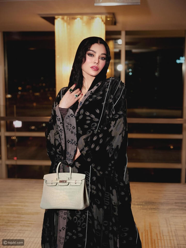 في إطلالة مفعمة بالأنوثة، أطلت هيفاء وهبي بقفطان يمزج بين الأسود والرمادي مع طرحة سوداء ناعمة فوق شعرها المنسدل. اختارت هيفاء المكياج الوردي (Pink Glam) الذي يعتبر من أكثر الألوان التي تمنح الوجه مظهراً شاباً ومشرقاً.