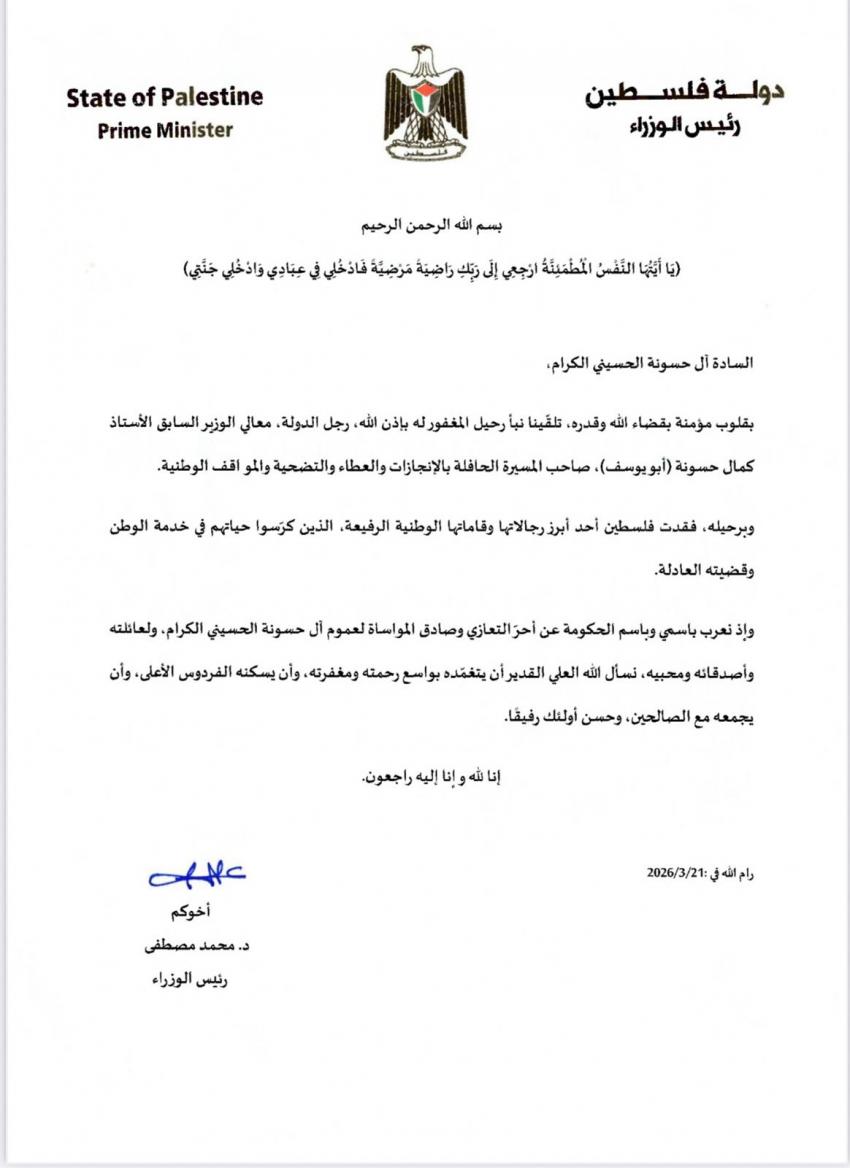وفاة الوزير الفلسطيني الأسبق كمال حسونة
