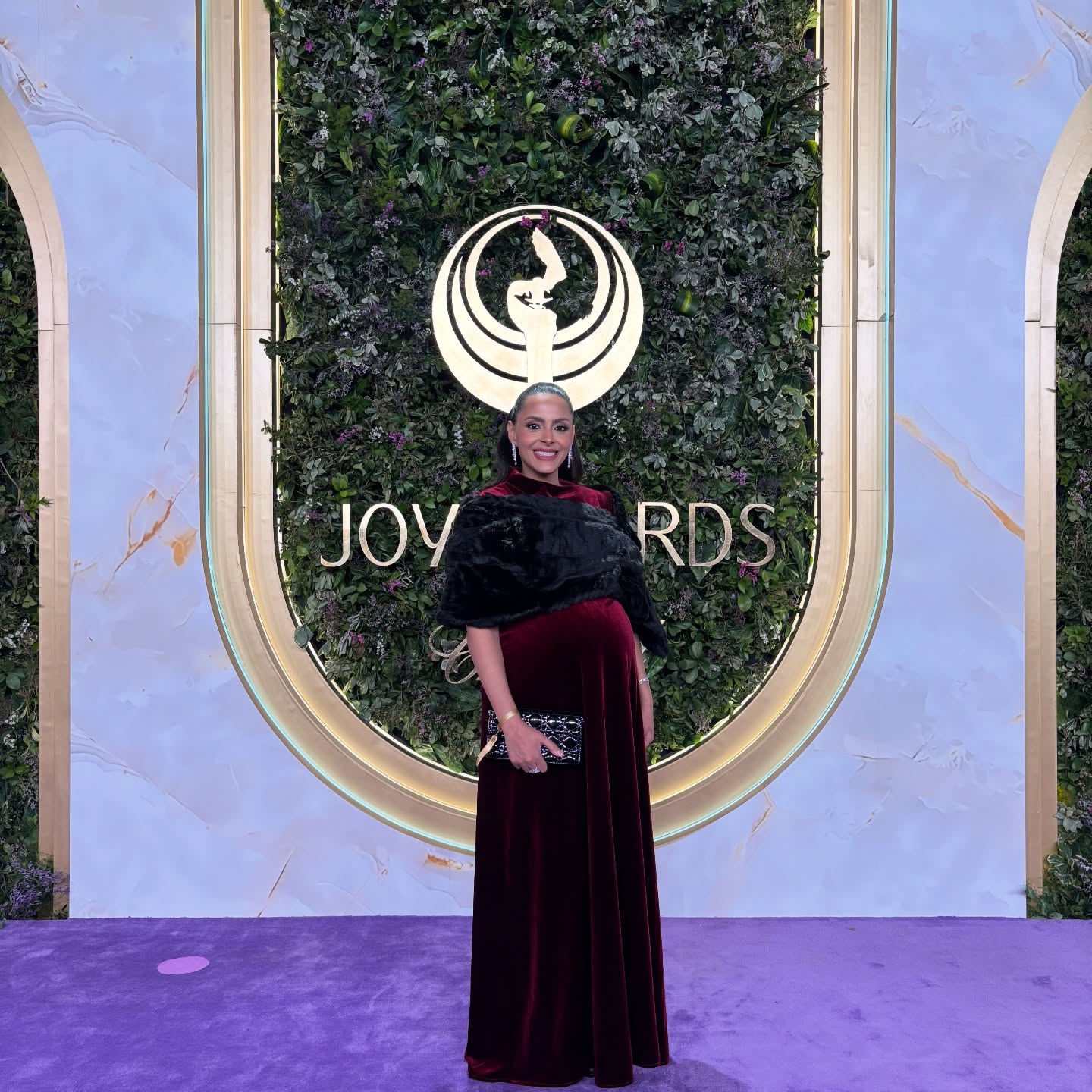 تألقت النجمة أضوى فهد في حفل Joy Awards بإطلالة حملت طابعًا ملكيًا واضحًا، حيث اختارت فستانًا طويلًا من المخمل الفاخر باللون البرغندي، جاء بتصميم محتشم مع ياقة عالية وأكمام طويلة، ما منحها حضورًا راقيًا ومتماسكًا. وزادت الإطلالة فخامة بإضافة شال عريض من الفرو الأسود غطى الأكتاف والصدر بأسلوب أنيق، مع حقيبة سهرة صغيرة باللون الأسود اللامع، لتجسد من خلال هذا الظهور توازنًا لافتًا بين الوقار والكلاسيكية.