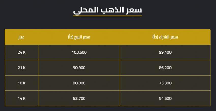 وبلغ سعر الغرام الواحد من الذهب عيارات 24 و18 و14 لغايات البيع من محلات الصاغة عند 103.60 دينارا و80 دينارا و62.70 دينارا على التوالي.