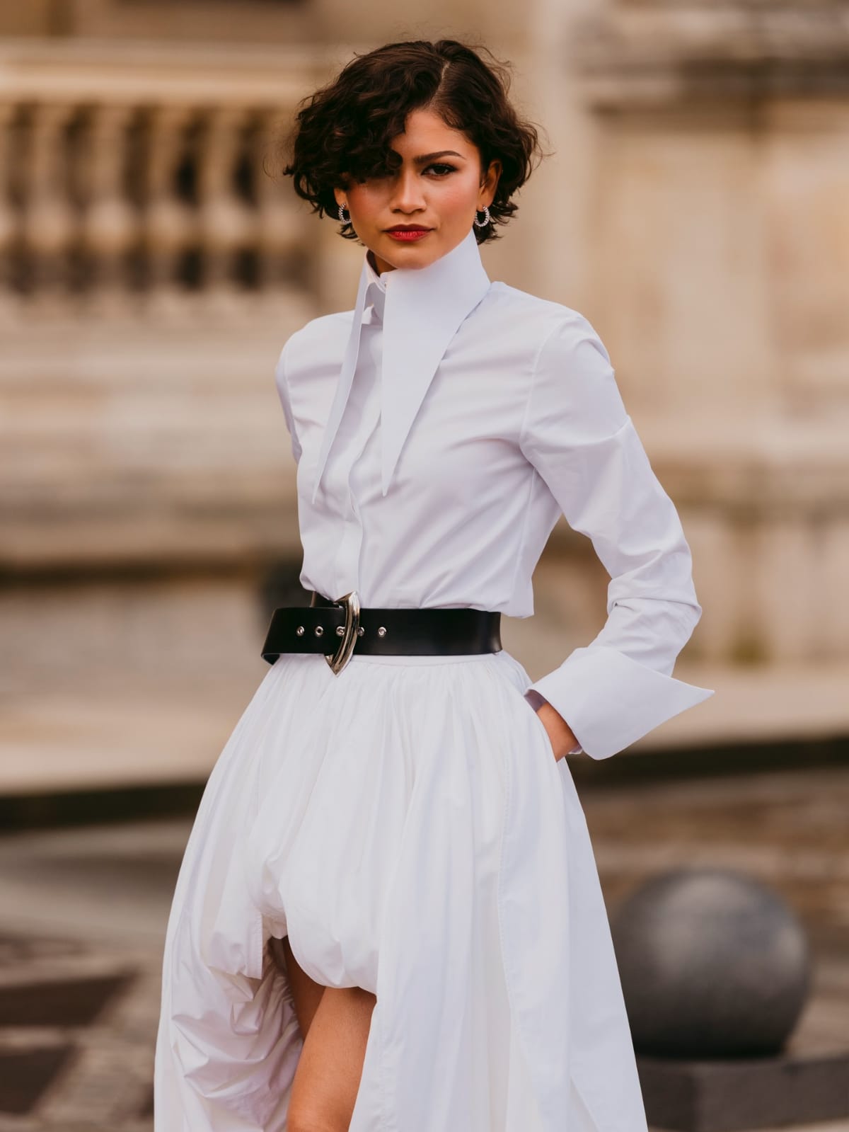 في خطوة "Something new"، تألقت زيندايا بفستان أبيض جديد لأول مرة على السجادة الحمراء في باريس.