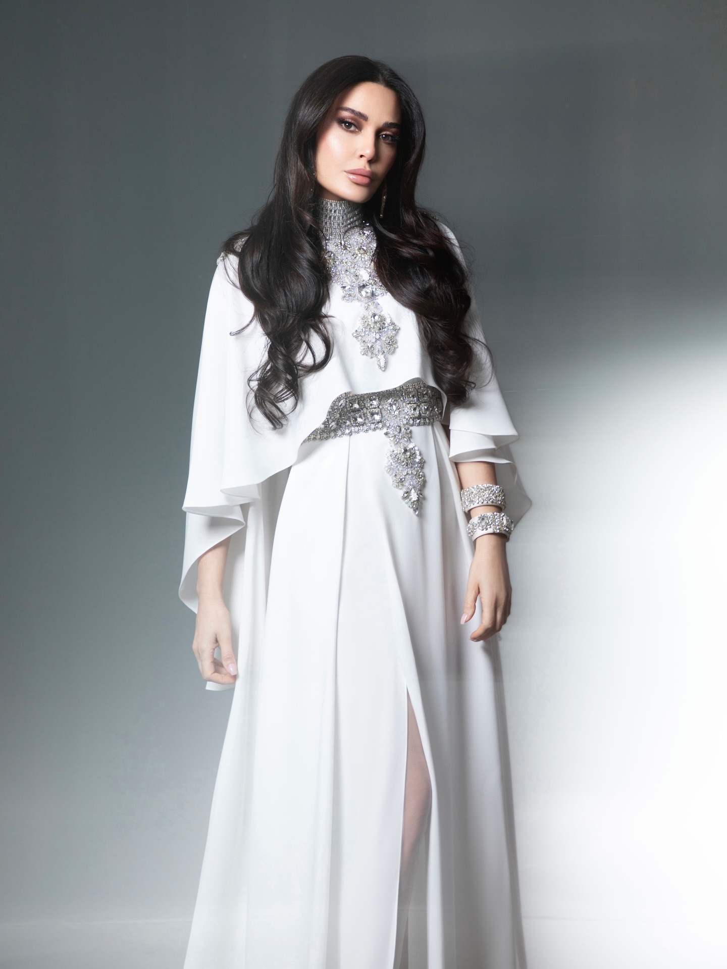 في إحدى إطلالاتها الراقية، ظهرت سيرين عبد النور بعباءة بيضاء أنيقة من دار Khaled & Marwan ضمن مجموعة “سحر”، ونسّقت معها مجوهرات مرصّعة أضفت لمسة فاخرة على الإطلالة الهادئة.