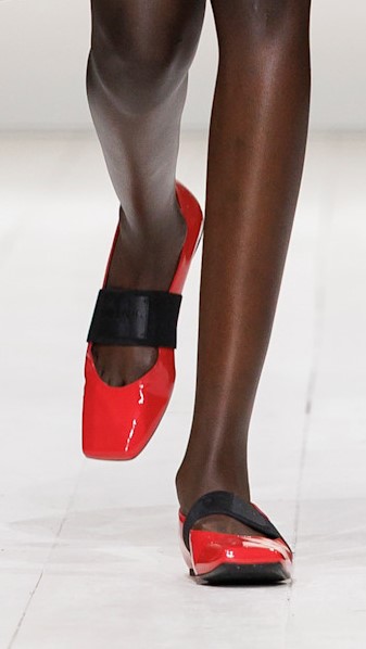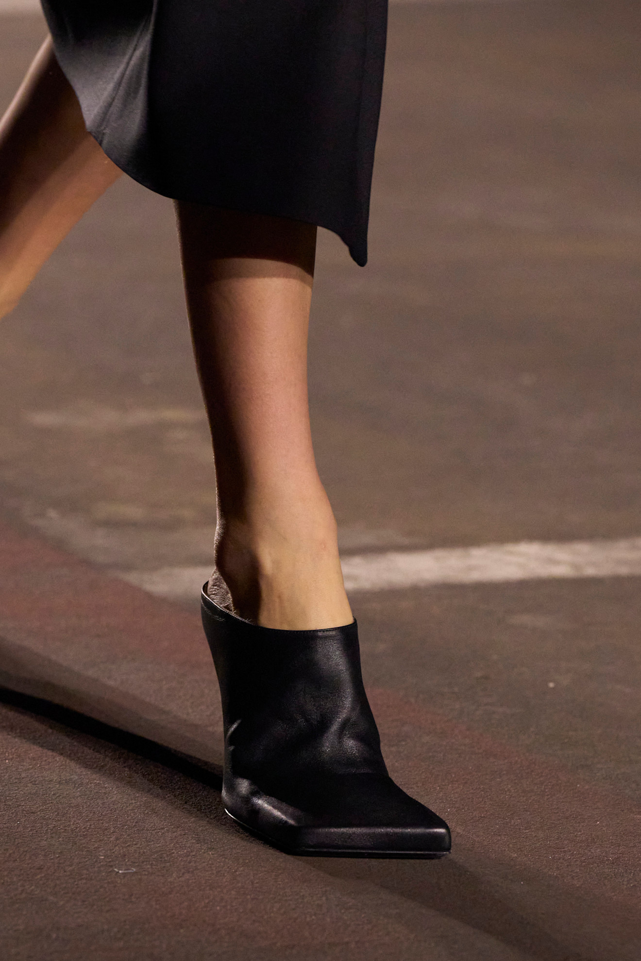 في عروض ربيع وصيف 2026، برزت هذه الصيحة لدى عدد من الدور العالمية بأساليب مختلفة. فقد قدّمت ماغلر أحذية mule بمقدّمة مربّعة تعكس جرأة الدار وطابعها المستقبلي، في حين أعادت آكنيه استوديوز تقديم اللوفرز بكعب مائل ومقدّمة مربّعة بأسلوب يجمع بين الحداثة والطابع العملي.