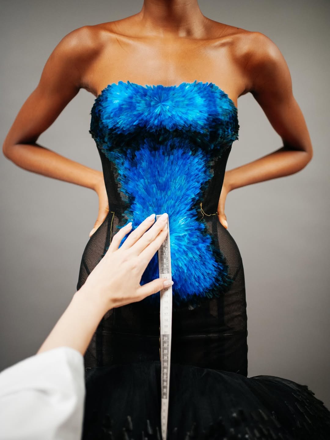 اختارت زيندايا إطلالة نهائية ساحرة باللون الأزرق من Schiaparelli ربيع/صيف 2026، عبارة عن فستان سترابلس طويل بقصة دراماتيكية، مزين بطبقات الريش الأسود والأزرق، مع ذيل خلفي طويل، وتفاصيل دقيقة حول الخصر تبرز حرفية التصميم. أكملت الإطلالة بمجوهرات من Tiffany & Co، شعر قصير مبلل بخصلات انسيابية، وحذاء مطرز مستوحى من الطيور. استغرق تنفيذ الفستان أكثر من 8000 ساعة عمل، مع تطريز 65000 ريشة حريرية و27 درجة للون الأزرق.