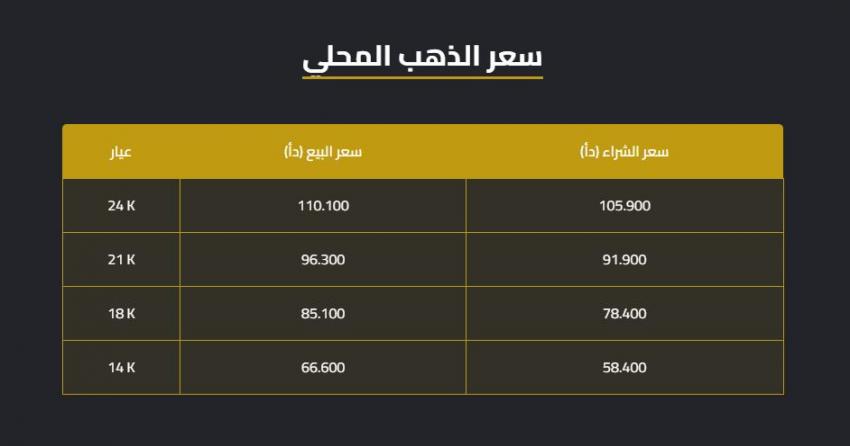 فيما بلغ سعر الغرام الواحد من الذهب عيارات 24 و18 و14 لغايات البيع من محالّ الصاغة 110.10 دنانير و85.10 و66.60 دينارا على الترتيب.