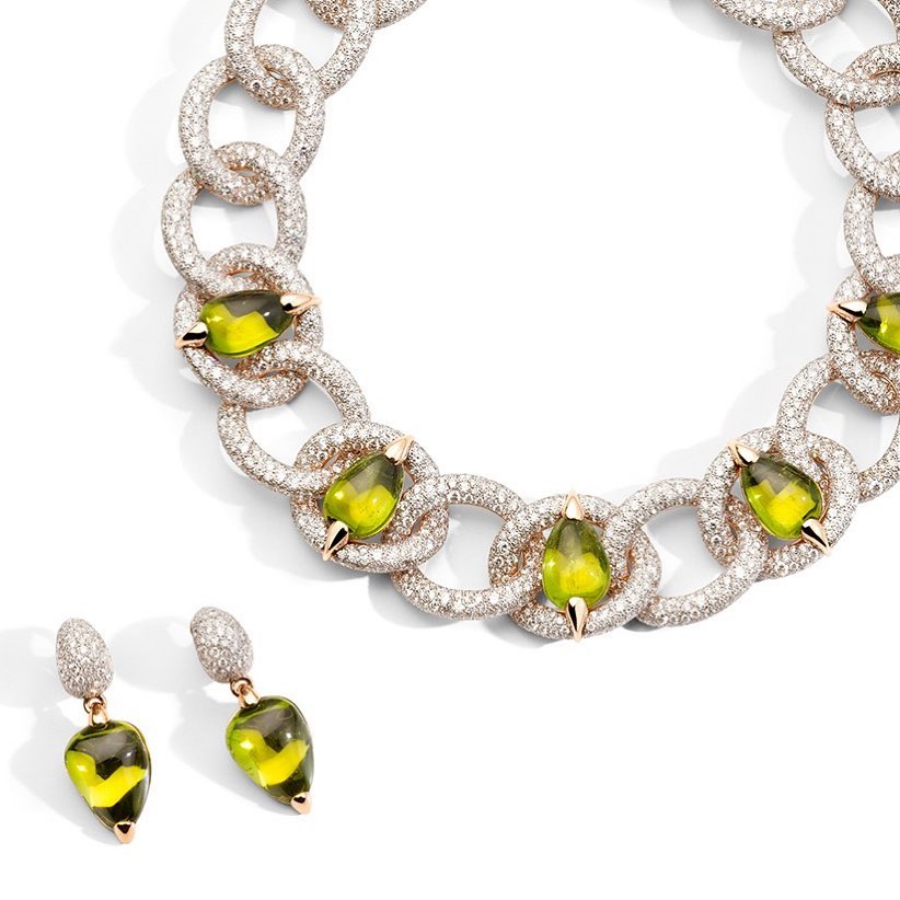 يحمل Peridot لقب “جوهرة الشمس”، بفضل لونه الأخضر الزيتوني المشرق الذي يتخلله بريق ذهبي.