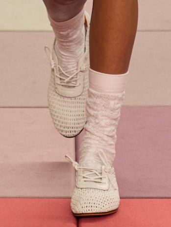 لم تغب اللمسة الأنثوية عن هذه الصيحة، إذ ظهرت تصاميم مستوحاة من أحذية الباليه والساتان، كما في عروض برادا، لتقدّم الحذاء الرياضي في صورة أكثر نعومة وأناقة، دون التخلي عن الراحة.
