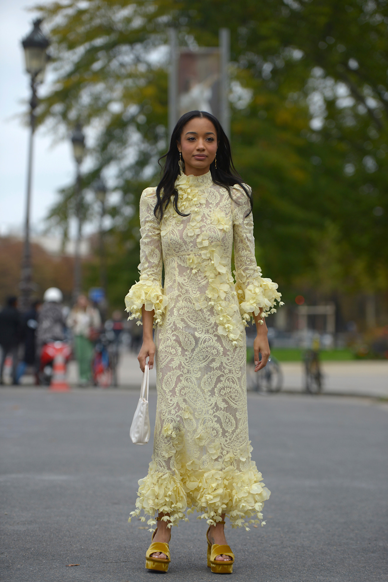أما الدانتيل، فيأتي كلمسة شاعرية دقيقة، سواء في تفاصيل صغيرة أو كعنصر أساسي، ليضيف بعدًا بصريًا رقيقًا دون مبالغة.