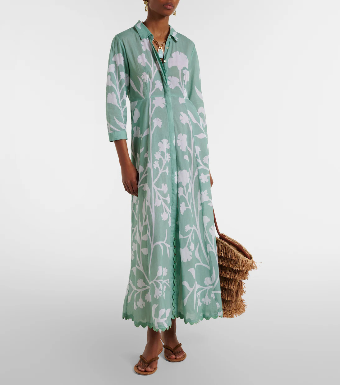 إطلالة نهارية تعتمد على فستان قطن بلون هادئ مع حقيبة بسيطة ووشاح خفيف يمنح لمسة إضافية من النعومة.