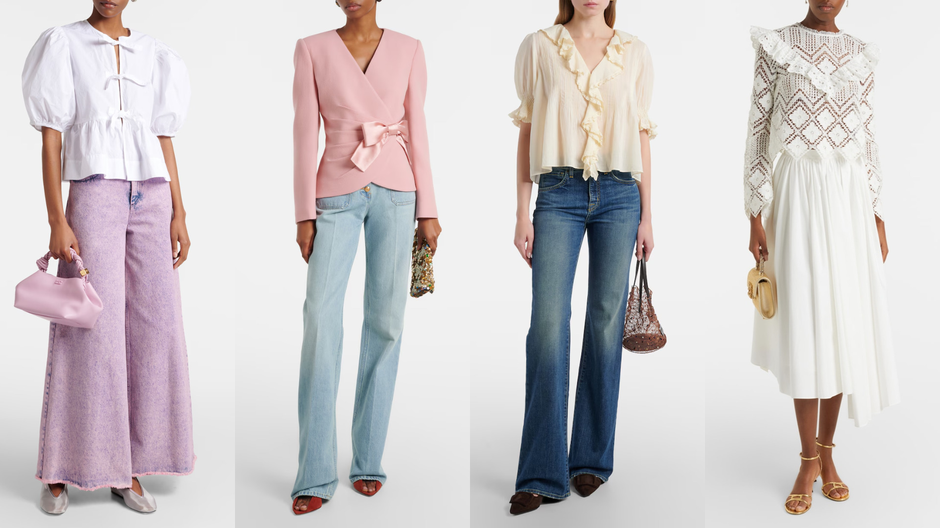 أما الإطلالة العملية، فتجمع بين بلوزة دانتيل ناعمة وبنطال جينز بسيط مع حذاء باليه مريح، لتوازن بين الراحة والرقة.