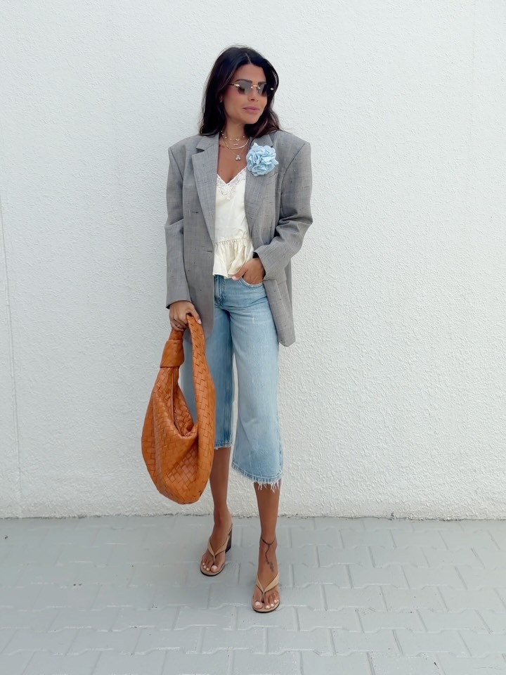 الجينز الرمادي مع البليزر: الرسمية بوجه جديد