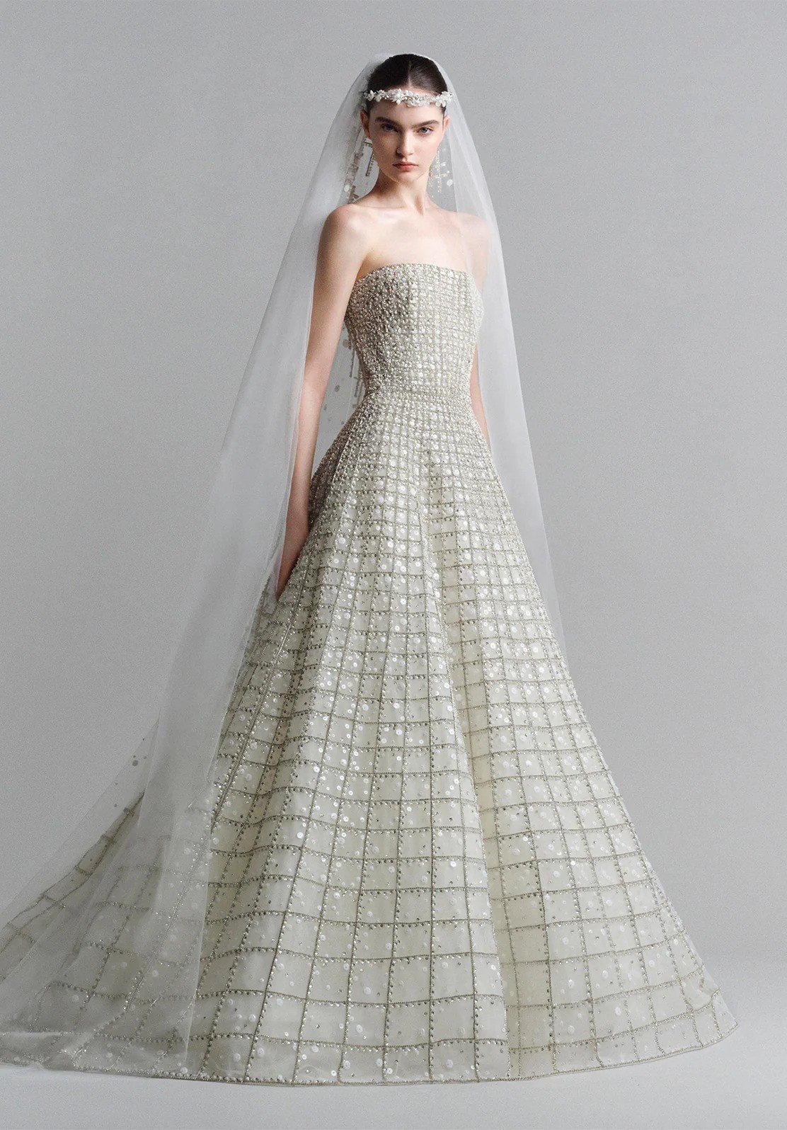 في تصاميم إيلي صعب وSareh Nouri، يصل التطريز إلى مستوى من الفخامة يجعله أقرب إلى فن يُرتدى لا مجرد تفصيل جمالي.