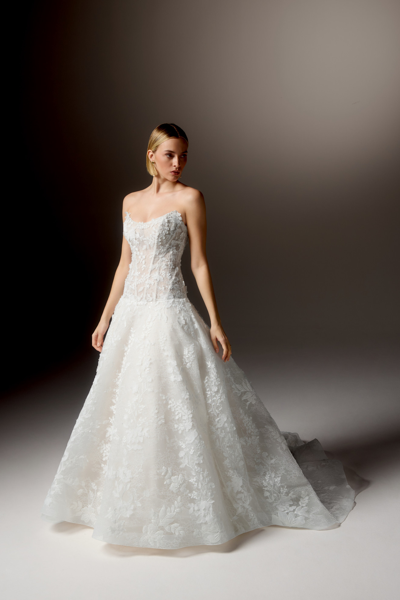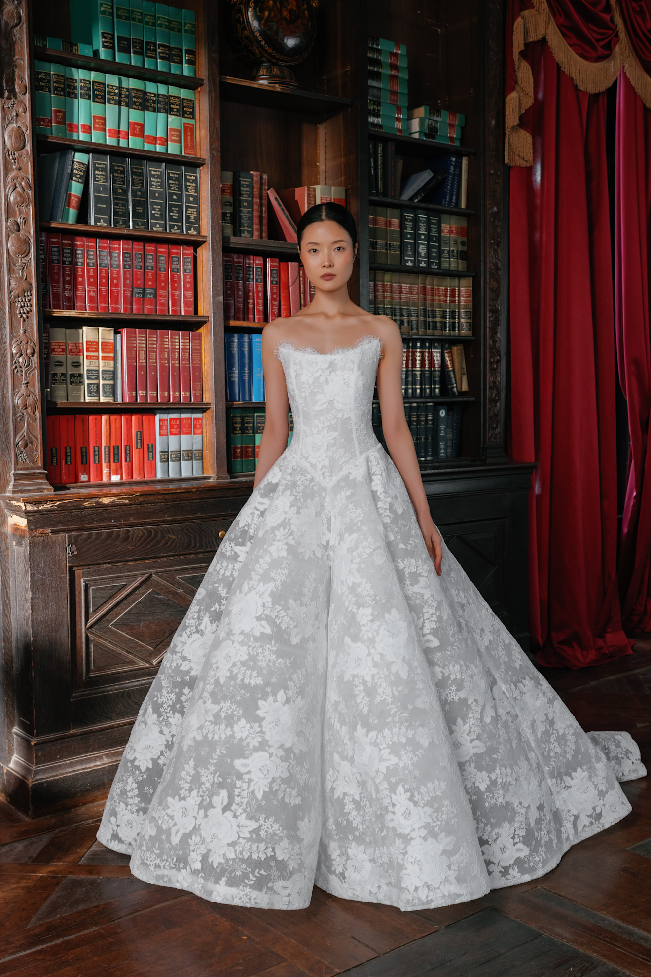 العروس في 2027 لا تكتفي بإطلالة واحدة. الفساتين أصبحت متعددة الطبقات، قابلة للتبديل، ترافقها من الحفل إلى السهرة بإطلالات مختلفة.