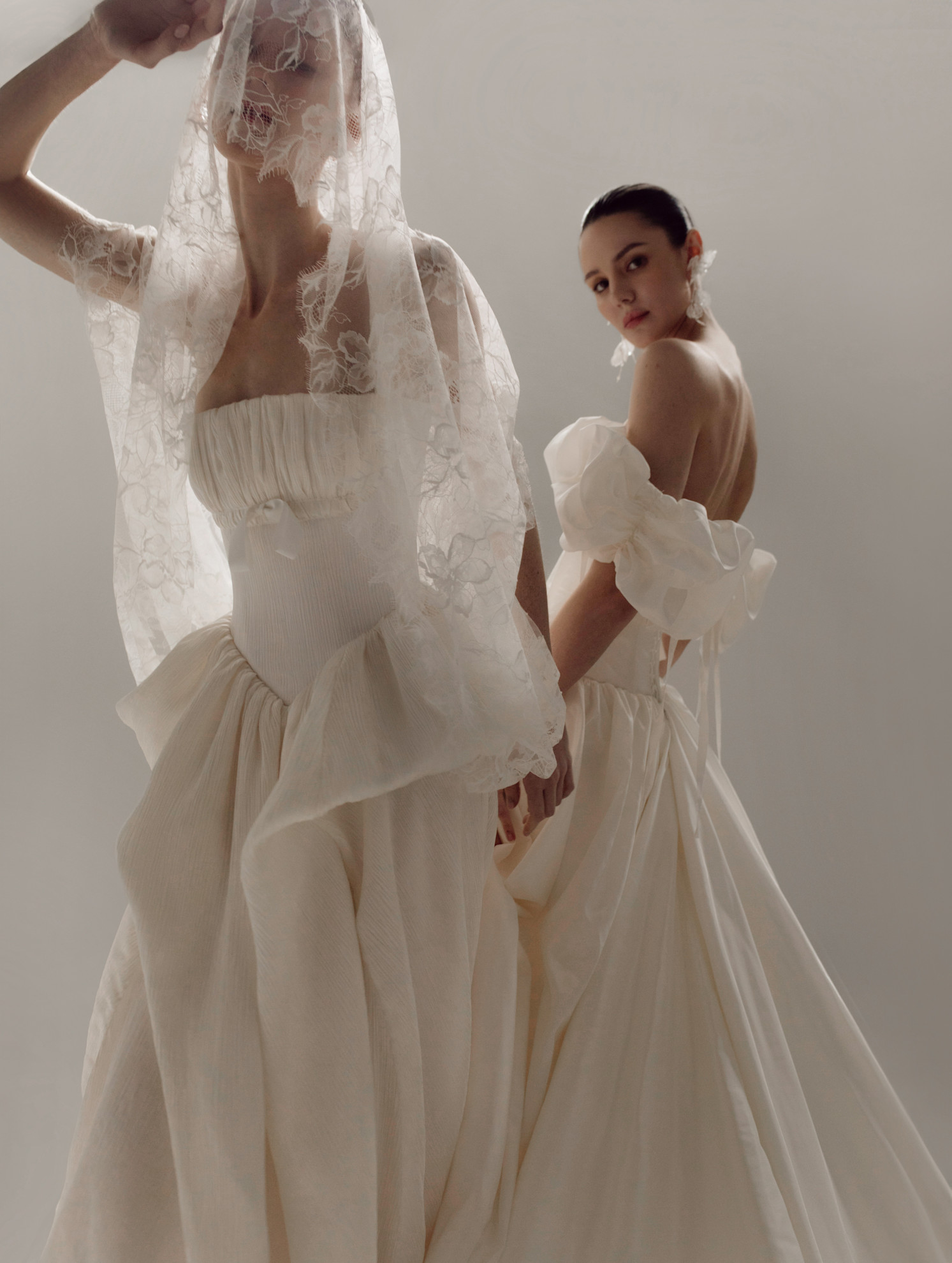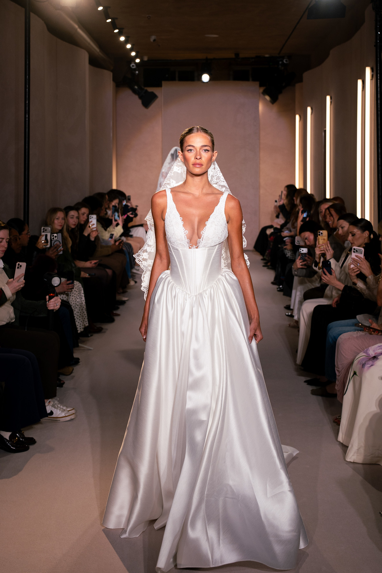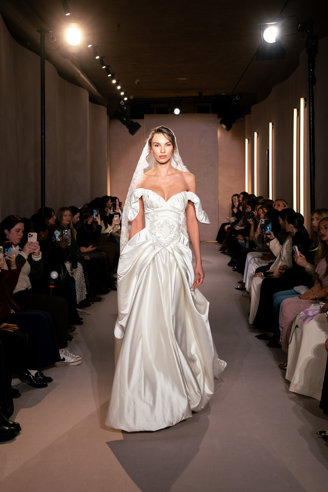 في تصاميم Milla Nova وJustin Alexander، بدا الفستان وكأنه منحوت بخطوط ممتدة، حيث يلتقي سحر العشرينيات مع جرأة الثمانينيات في قالب حديث.