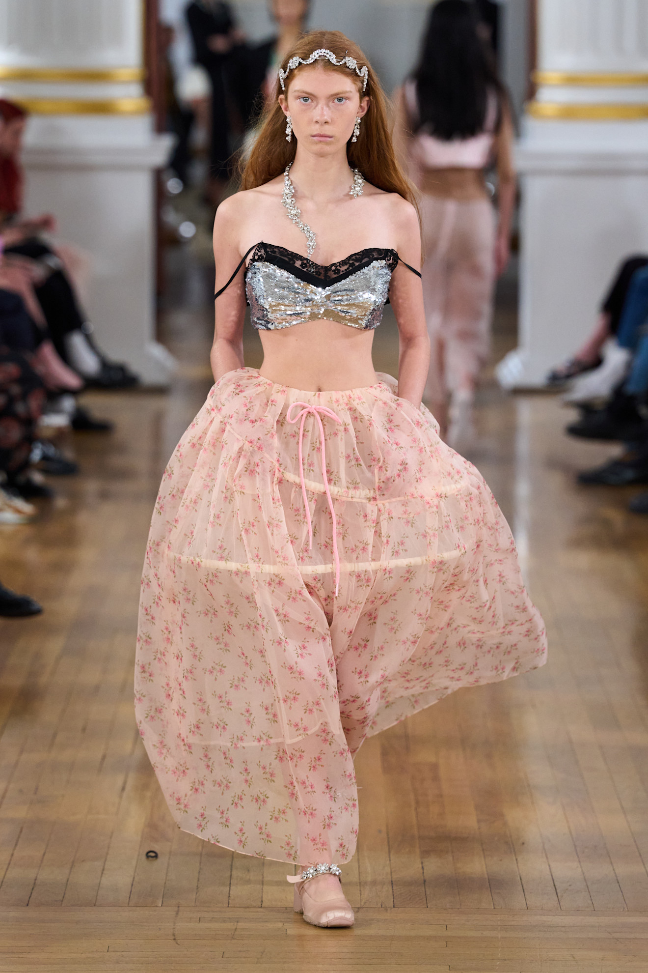 تعود نقشة الأزهار هذا الموسم بروح أكثر هدوءًا وأناقة، بعيدة عن المبالغة، وقريبة من الحرفية الدقيقة. وقد برزت هذه اللمسة في تصاميم Simone Rocha، حيث تحولت الأزهار إلى عنصر يروي حكاية بصرية تجمع بين الرقي والحنين، بأسلوب يناسب المرأة المعاصرة.