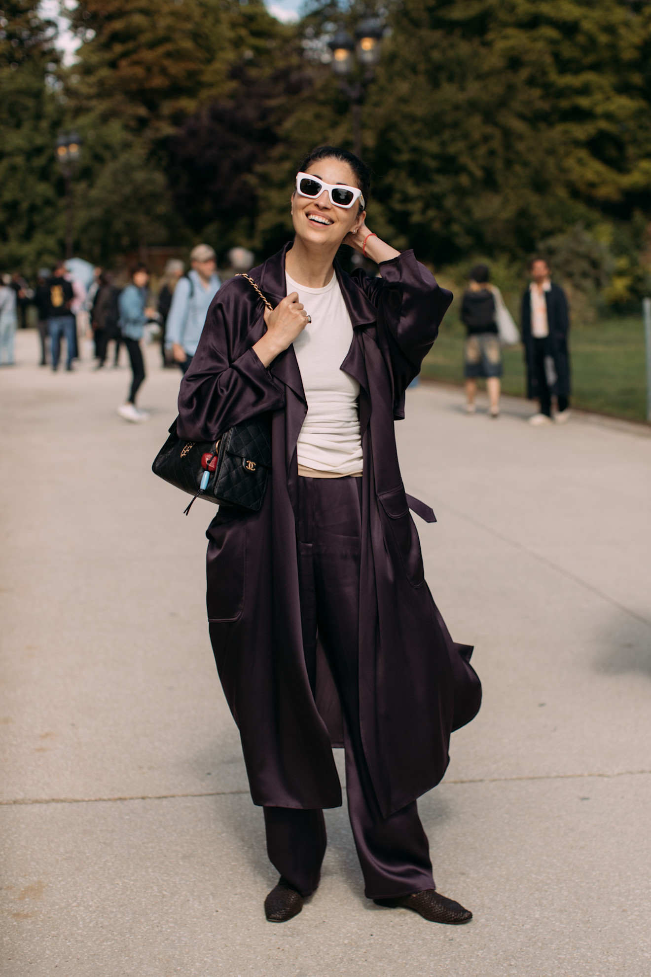 اكسري نعومته بإضافة سترة جلدية أو بليزر واسع، ونسّقيه مع حذاء مسطح أو سنيكرز أنيق ليصبح مناسبًا للنهار. القاعدة بسيطة: كلما زادت نعومة القطعة، أضيفي عنصرًا عمليًا يوازنها.