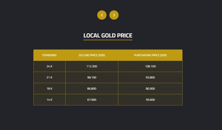 وبلغ سعر بيع غرام الذهب عيار 21 الأكثر رغبة في السوق المحلية، 98.10 دينارا لغايات البيع من محلات الصاغة، مقابل 93.80 دينارا لجهة الشراء.
