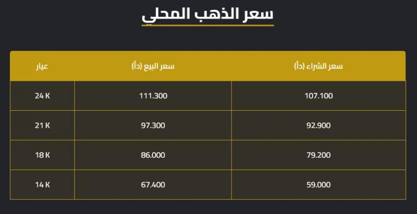 فيما بلغ سعر الغرام الواحد من الذهب عيارات 24 و18 و14 لغايات البيع من محالّ الصاغة 111.30 دنانير و86.00 دينارا و67.40 دينارا على التوالي.