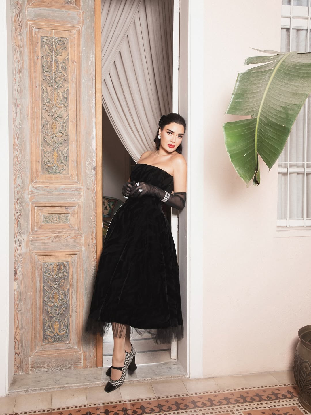 في أحدث ظهور لها على إنستغرام بعد غياب لافت، أطلت سيرين بفستان أسود كلاسيكي مكشوف الكتفين، جاء بقصة أنثوية أنيقة وتنورة منفوشة مستوحاة من أجواء نجمات الزمن الجميل. أضافت القفازات السوداء الشفافة طابعًا دراميًا راقيًا، فيما اكتملت الإطلالة بتسريحة مشدودة للخلف ومكياج يركز على العيون المحددة وأحمر الشفاه الأحمر، مع مجوهرات ماسية زادت من فخامة المشهد.