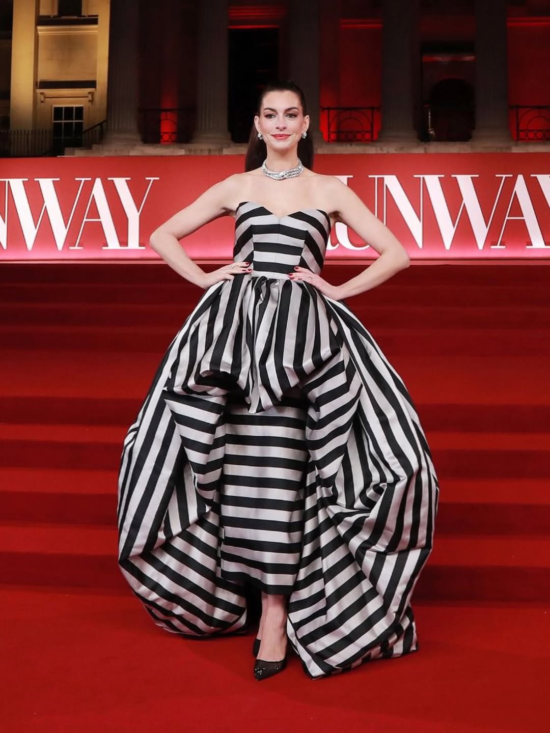 واصلت آن هاثاواي تأكيد مكانتها كأيقونة للموضة، باختيارات جمعت بين الجرأة والرقي. من فساتين الكورسيه ذات القصات الأنثوية إلى التصاميم الكلاسيكية بلمسات حديثة، بدت إطلالاتها وكأنها خرجت من عرض أزياء فاخر، مع اهتمام واضح بالتفاصيل الدقيقة والتنسيق المتكامل.