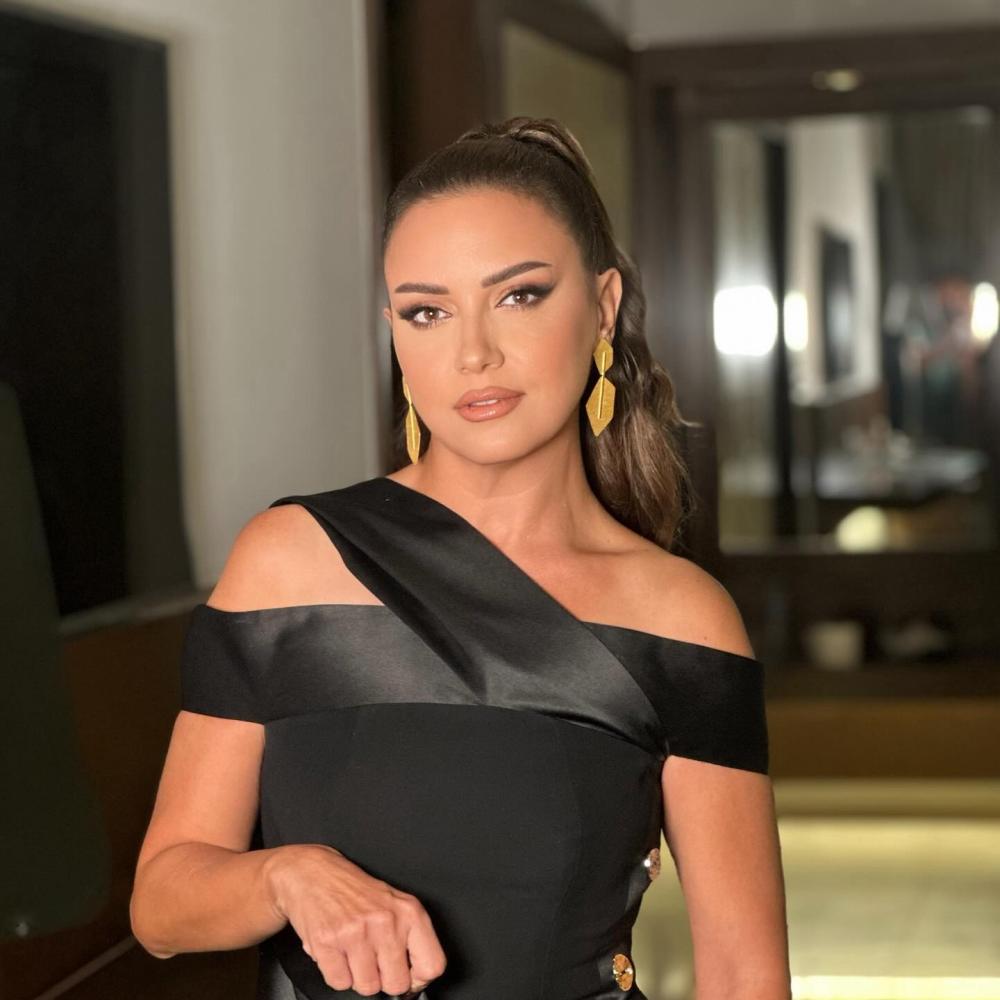 وعندما تميل إلى الإطلالات الفاخرة، تحافظ على نفس النهج الهادئ. ففي فستان ذهبي من توقيع Yasmine Hawa Couture، اختارت مجوهرات مرصعة بالألماس من El Mawardy Jewelry، حيث أضافت لمسة براقة دون أن تطغى على الإطلالة.