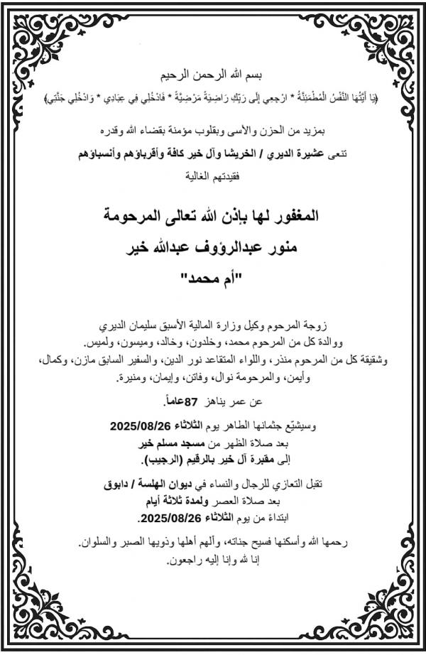 المجلس القضائي ينعى والد زميليهم القاضي الدكتور هشام الطراونة والقاضي عاصم الطراونة 26-08-2025 09:32 PM
