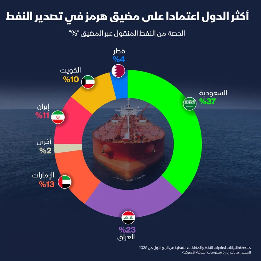 ما أكثر الدول اعتماداً على مضيق هرمز في تصدير النفط؟